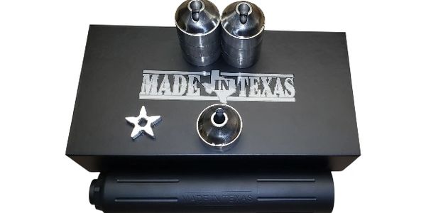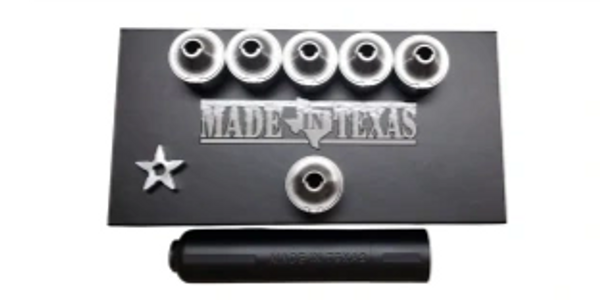 Our smaller micro version both in Ti and SS .30 caliber. Can be over bored for .338 Lapua rifle or up to .357/9mm pistol cartridge pressures.